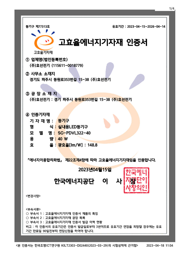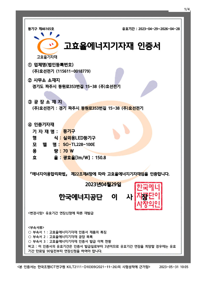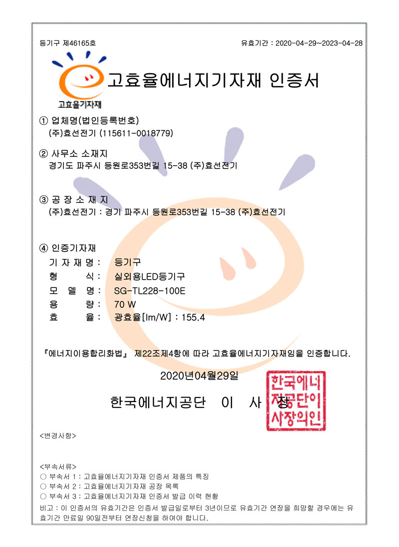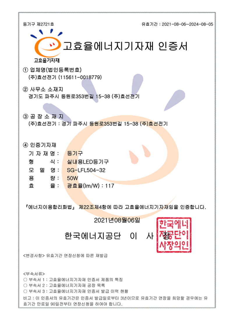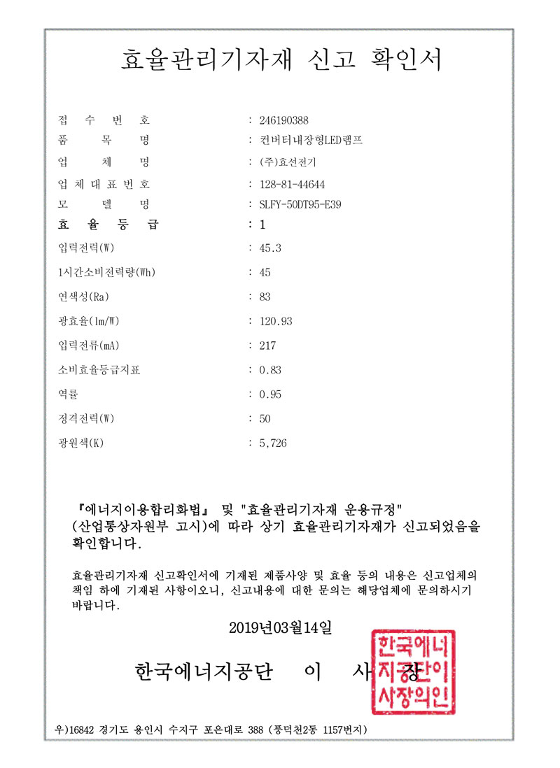 ½Ç³»¿ëLEDµî±â±¸ °íÈ¿À²ÀÎÁõ¼