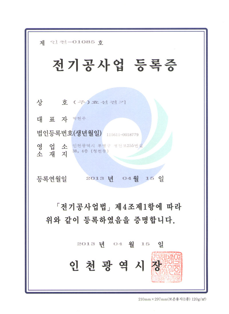 Àü±â°ø»ç¾÷ µî·ÏÁõ