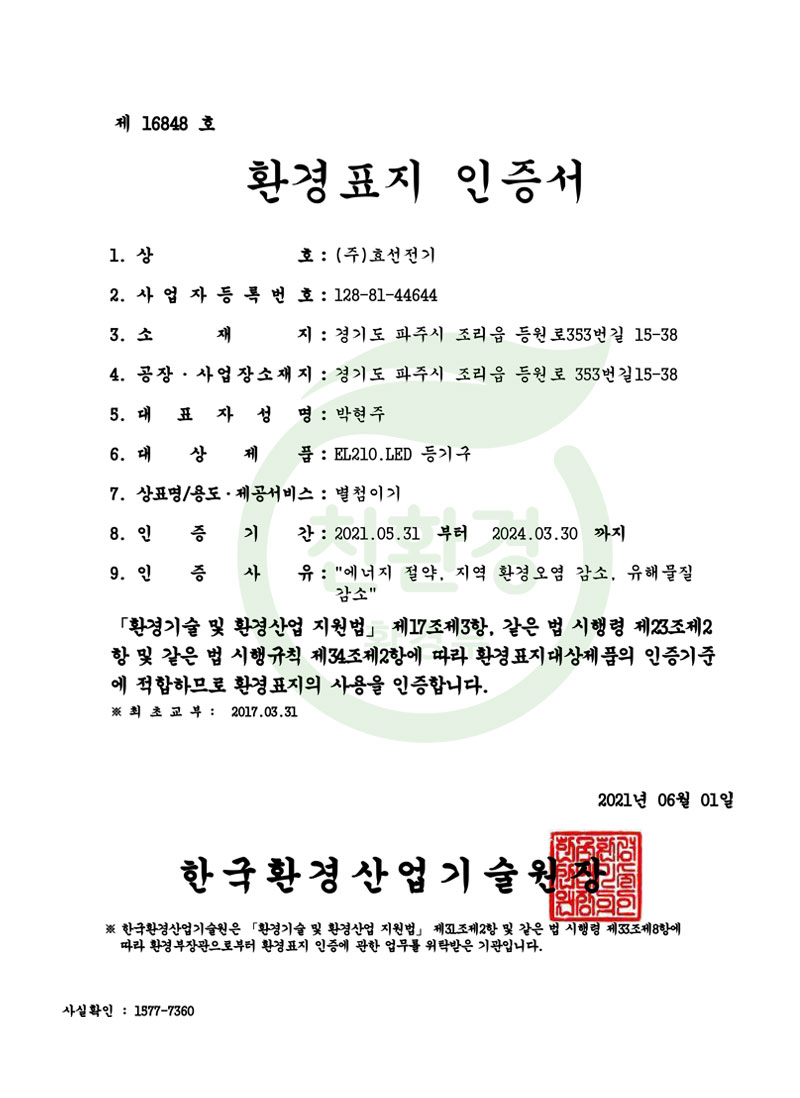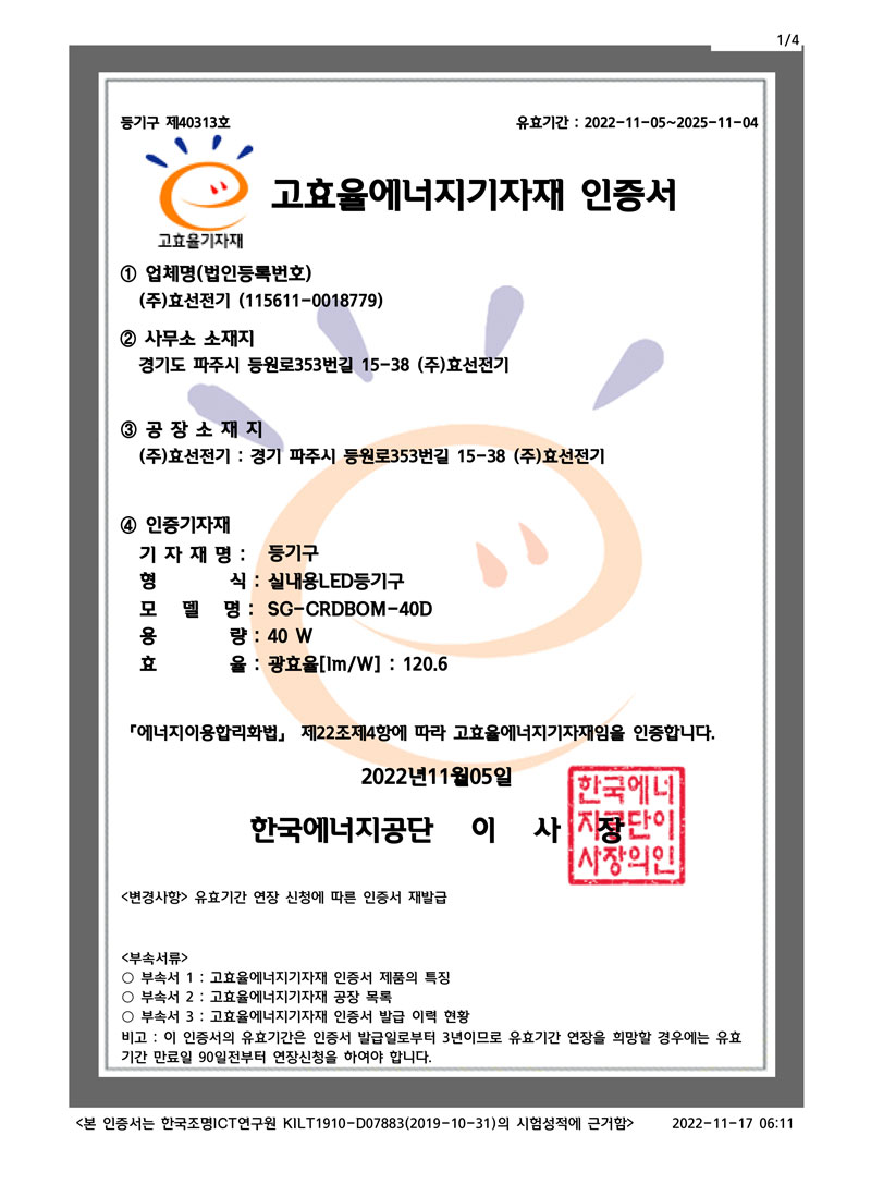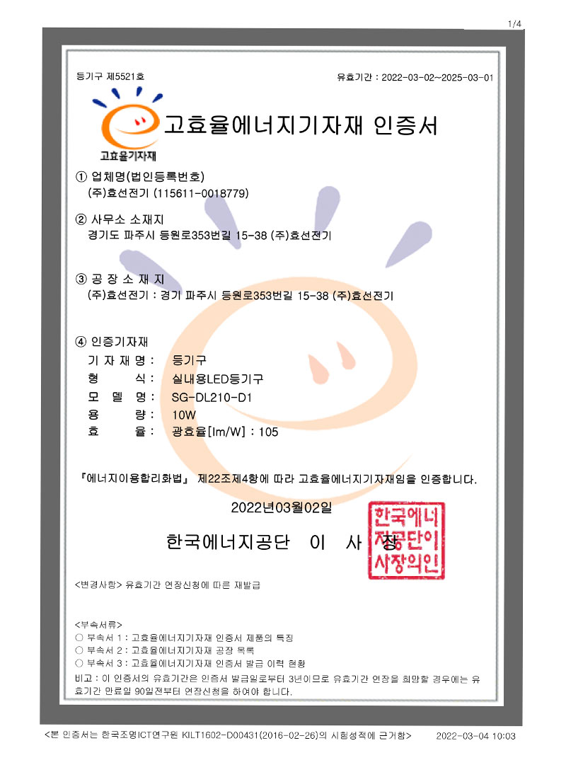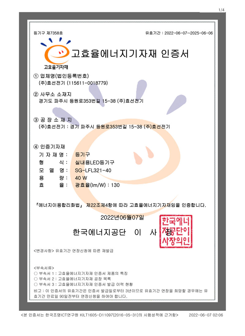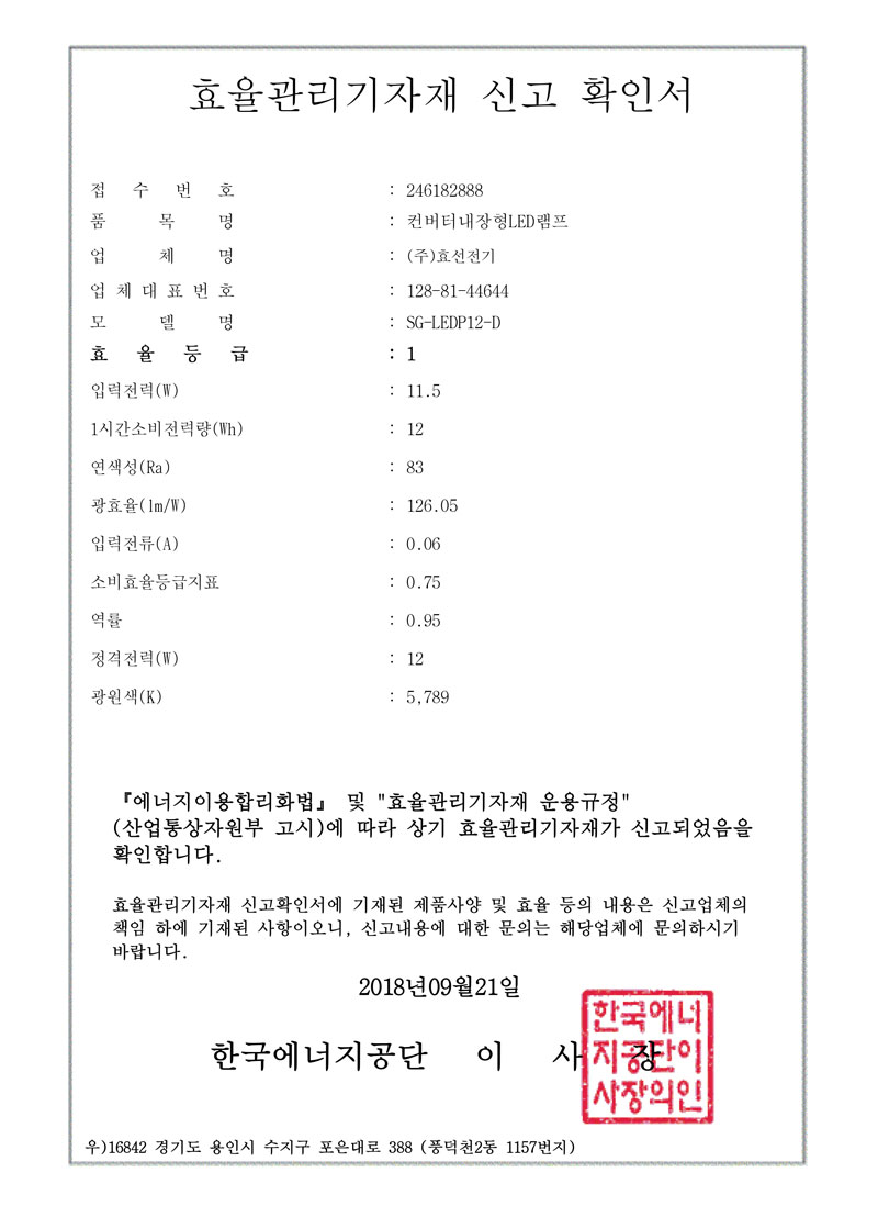 ½Ç³»¿ëLEDµî±â±¸ °íÈ¿À²ÀÎÁõ¼