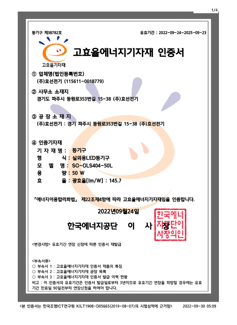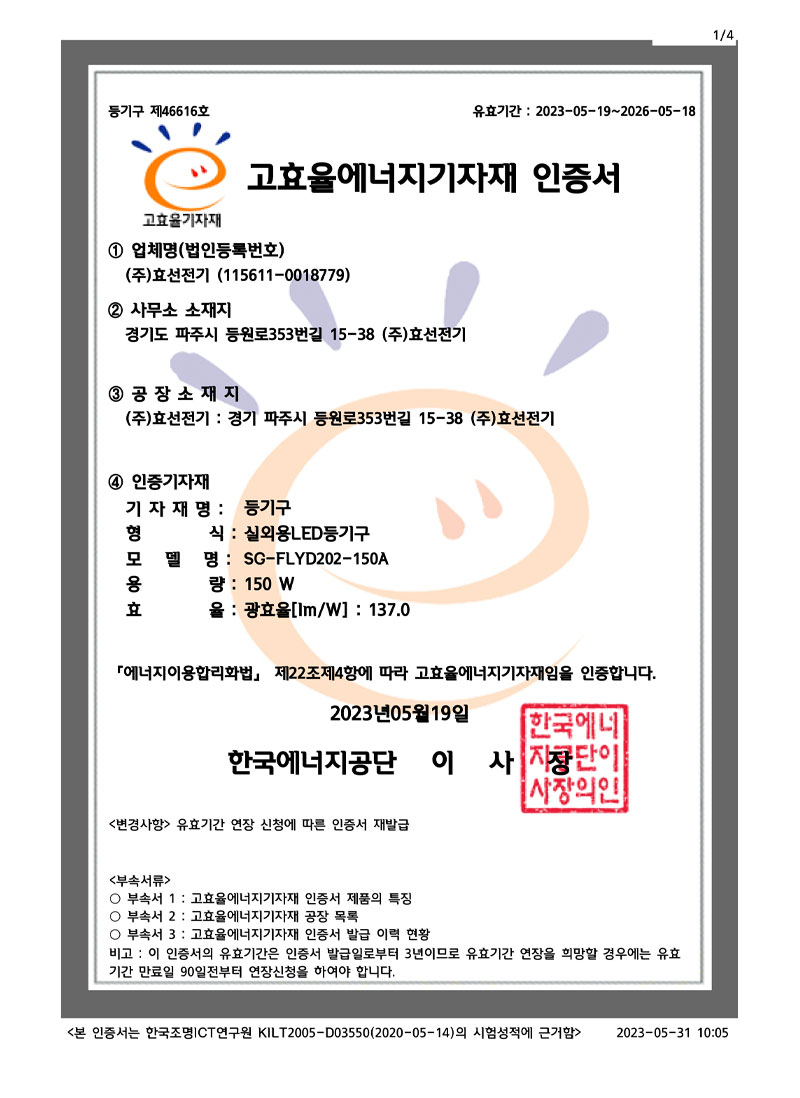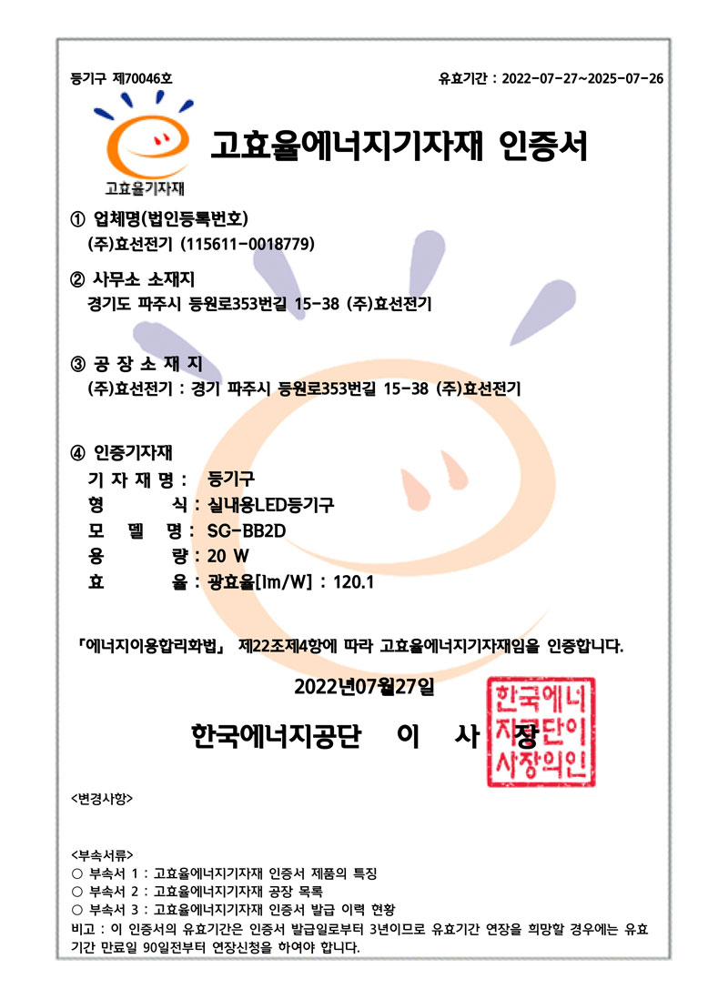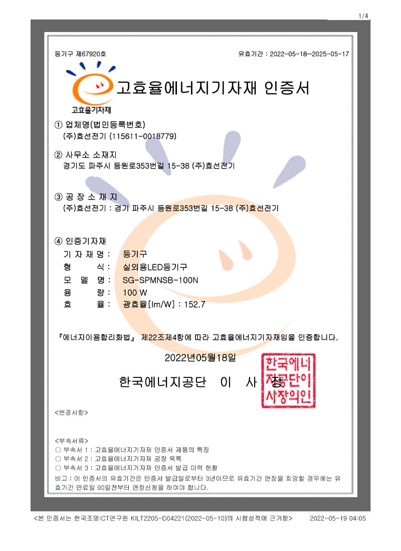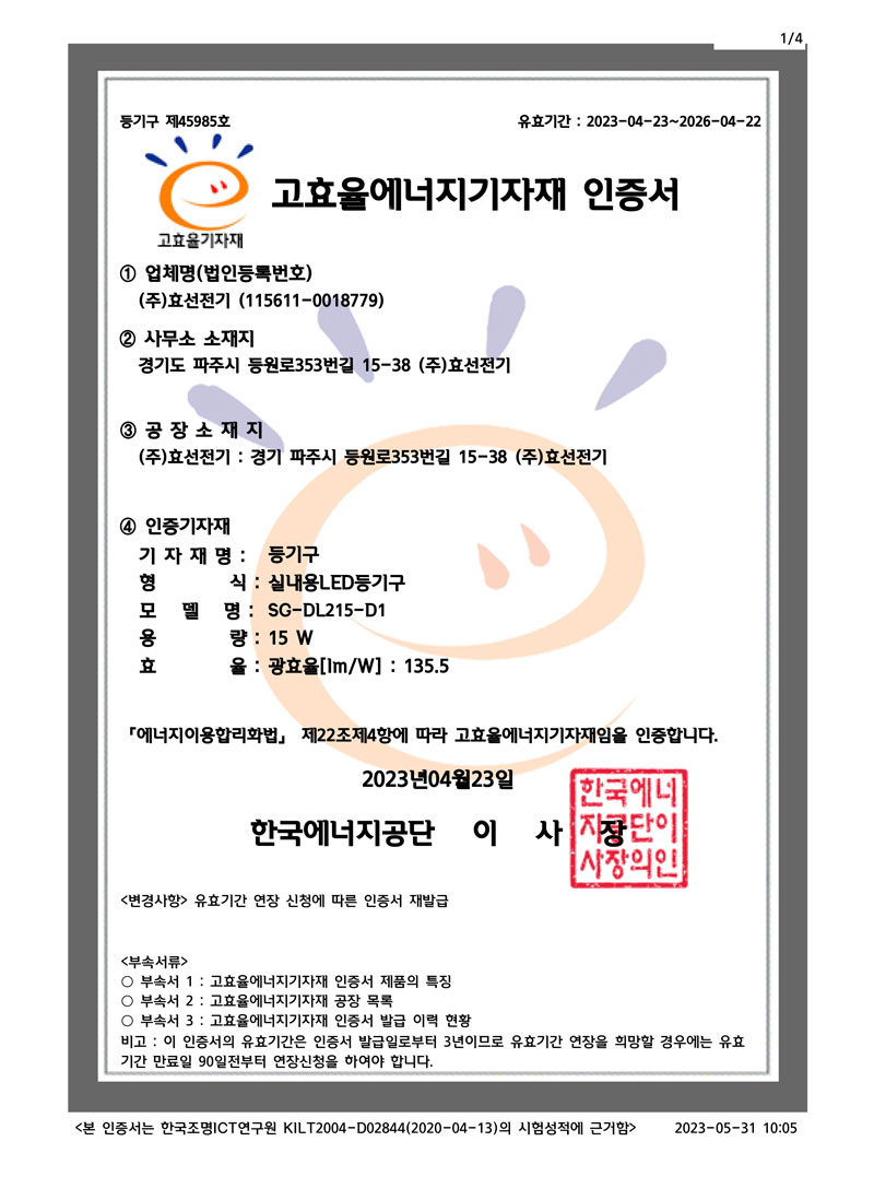 ½Ç³»¿ëLEDµî±â±¸ °íÈ¿À²ÀÎÁõ¼